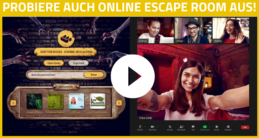 Falls Du eher etwas mehr Aufregung brauchst, dann buche jetzt Dein Abenteuer im Exit the Room München. Dort bist Du mit den Aufgaben so beschäftigt, dass Du sicher den ganzen Stress mit dem Abitur schnell vergisst. Jeden Raum kannst Du nur nach dem lösen der Rätsel verlassen. So entspannst Du Dich im Escape Room optimal, weil Du Dich ganz darauf konzentrieren musst. Dadurch vergisst Du schnell alle anderen Sorgen. Dort werden mehrere aufregende Themen, wie Zombie, Murder oder Prison angeboten. Was gefällt Dir am besten?